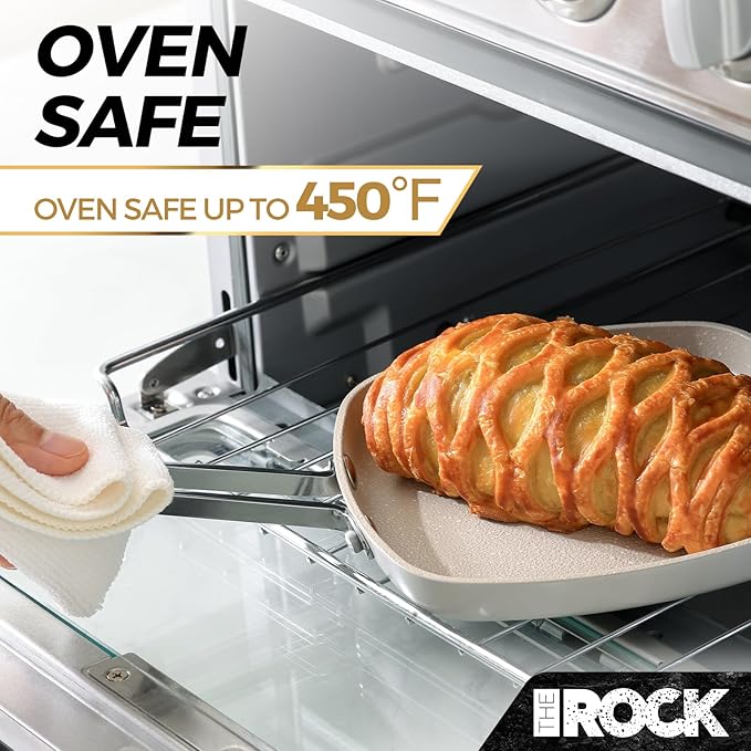 - Oven Safe: This non-stick cookware is oven safe up to 450°F / 230°C