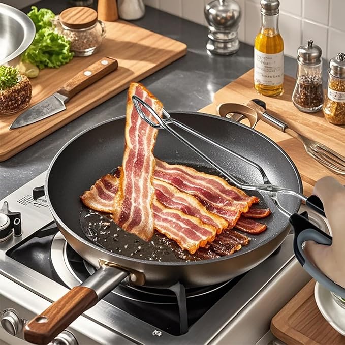 - MULTIPLE APPLICATIONS - The tong gripper has an imprint on metal to prevent food slippage, great for grilling in the kitchen or outdoor barbecue. Works well for turning and lifting meat, fish, crab, chicken, turkey, burger, hotdog, corn, vegetable salad and taco etc.