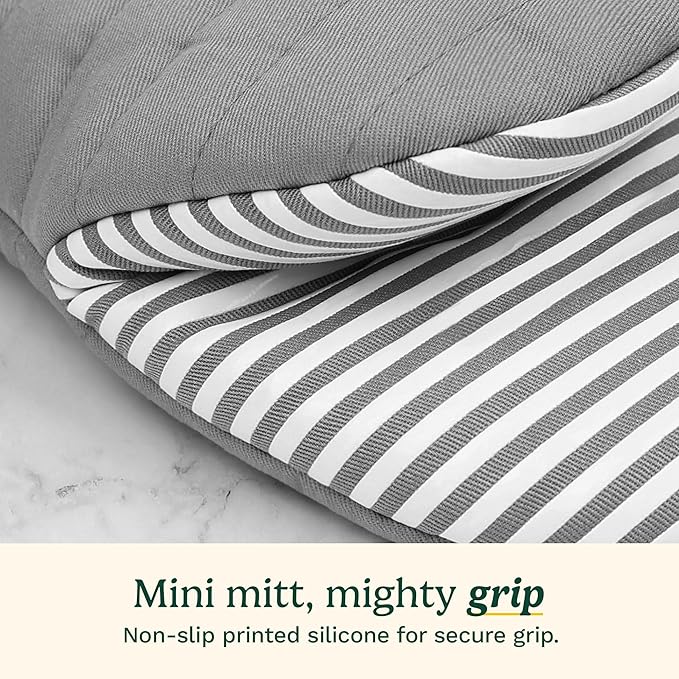 - OPTIMAL HEAT PROTECTION: These mini oven mitts are designed with slip-resistant printed silicone strips that offer a secure grip and high heat resistance (up to 450 degrees). Whether you're pulling a hot dish from the oven or handling a sizzling pan, these mitts provide essential protection for all your kitchen cooking and baking needs.