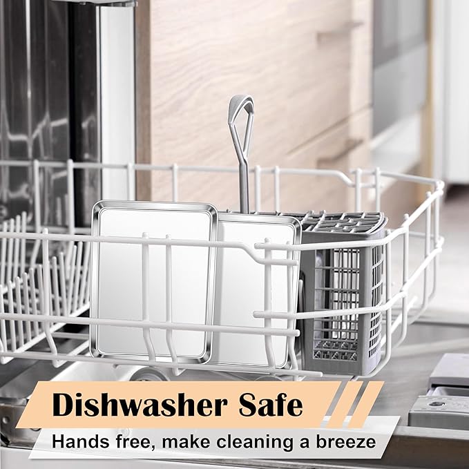- 【DURABLE & WARP FREE】 One-piece metal structure with a mirror finish enhance hardness, wear resistance and rust protection, Thick rimmed edges prevent warping to ensure durability for long-lasting use, Toaster oven/air fryer/dishwasher/freeze safe