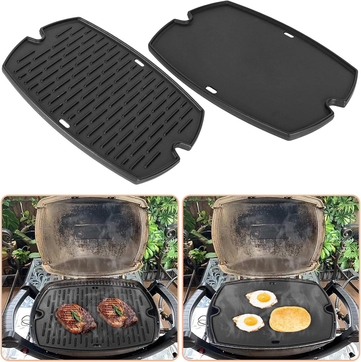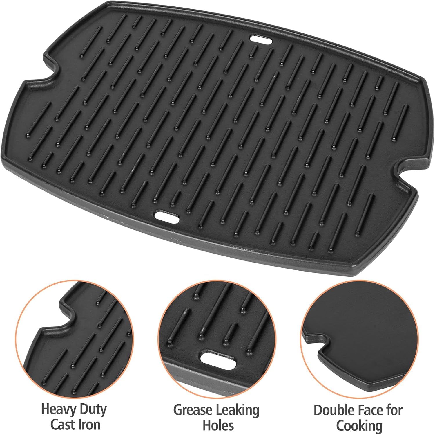- Dimension & Package: Include 1 Pack cast iron grill griddle, measure is 17"L x 12.7"W. This is the best weber gift for people who enjoy barbecue. Please kindly make check the SIZE and MODEL of your parts and compare with ours BEFORE purchasing