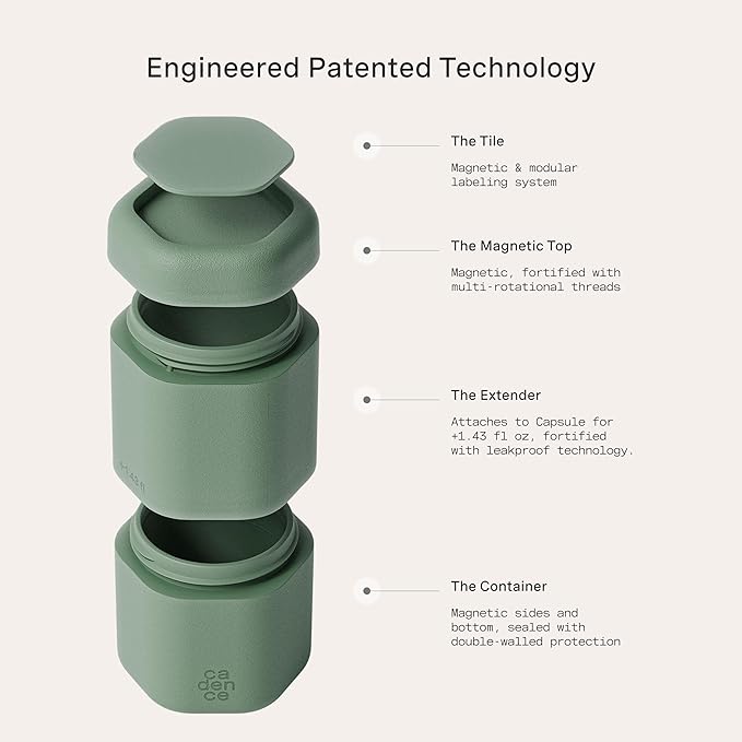- OFFICIAL CADENCE DESIGN - Meet the Cadence Full Skincare Capsule Set, the ultimate travel essentials for women and men who want to keep skincare products neatly stored. These reusable capsules for travel toiletries comes with a labeled tile: cleanser, moisturizer, serum, toner, makeup remover, and sun icon.