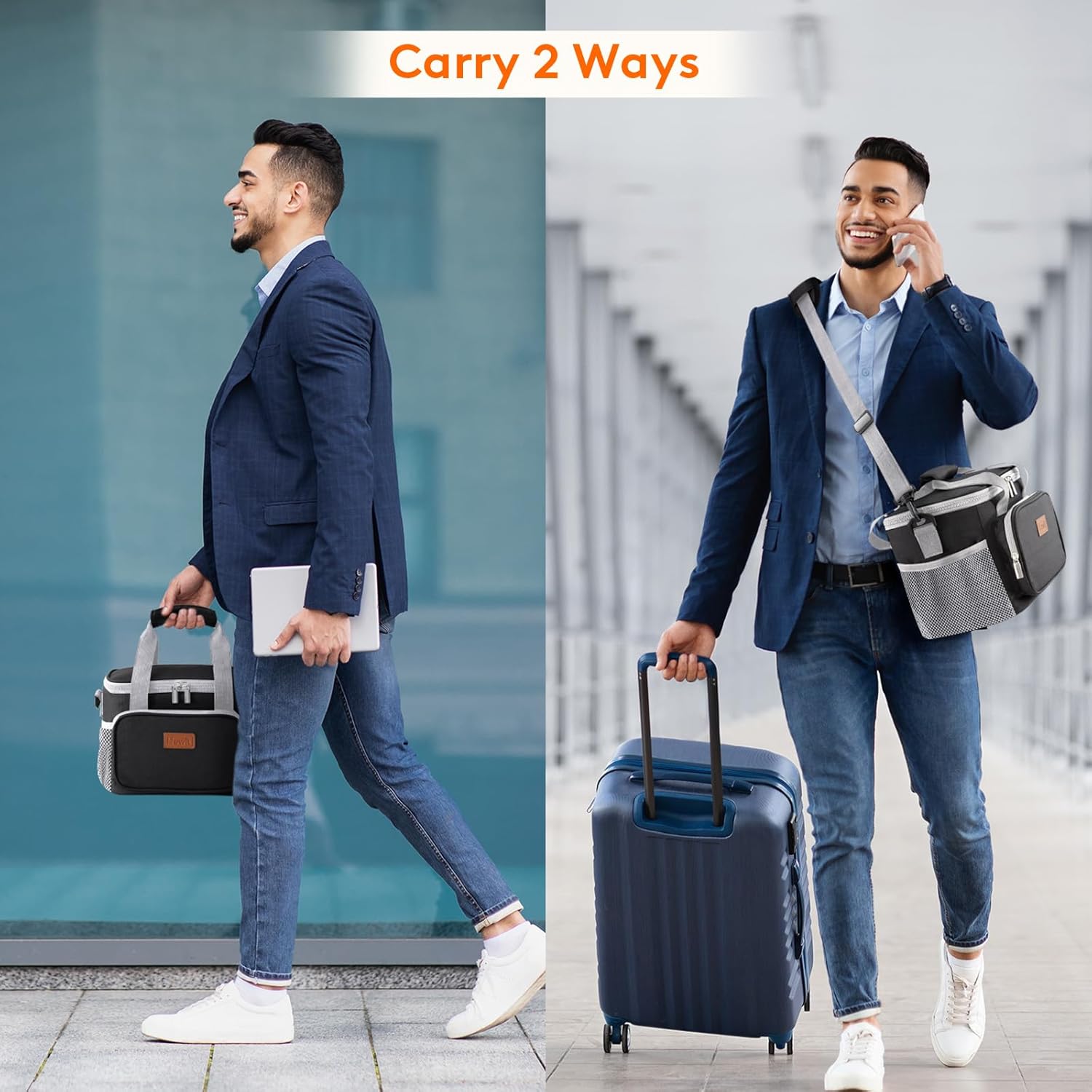 - Convenient & Portable: The lid of this cooler lunch bag can be opened up widely with strong two-way zippers, which means you can put your lunch container into the bag and take out of the bag vertically. Prevent liquids from leaking out of the container and soiling inside the bag. Tough handles and shoulder girdle allows you to carry it easily. Moreover, the front and side extra pocket can hold small items like keys and earbuds.