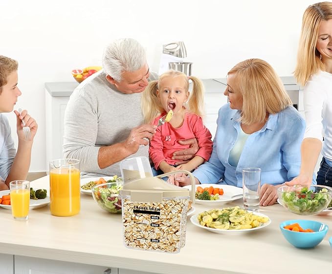 - 【Upgraded Material Storage Container】Transform your pantry with our Dry Food Storage Container, the premium storage solution for Cereal, Grains, Beans, Sugar, Rice, Nuts, Snacks, Pet Food, Candy, and more. Crafted from a durable blend of PE and PP, it's thicker, stronger, and built to last.