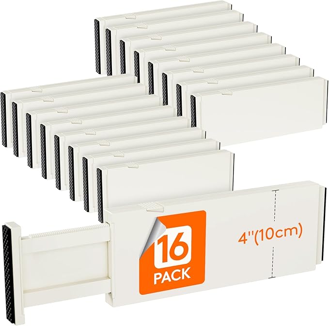 Lifewit 16 Pack Drawer Dividers 4" High, 11-17" Adjustable Drawer Organizers for Clothes, Expandable Dresser Separators in Bedroom/Bathroom/Kitchen/Fridge/Office Organization and Storage, Beige
