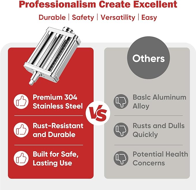 - Engineered from premium alloy and stainless steel, the pasta maker attachment for kitchenaid mixer is built to last, outshining flimsy plastic counterparts. Experience the reliability of a tool that stands the test of time, ensuring your pasta-making sessions are nothing short of exceptional.