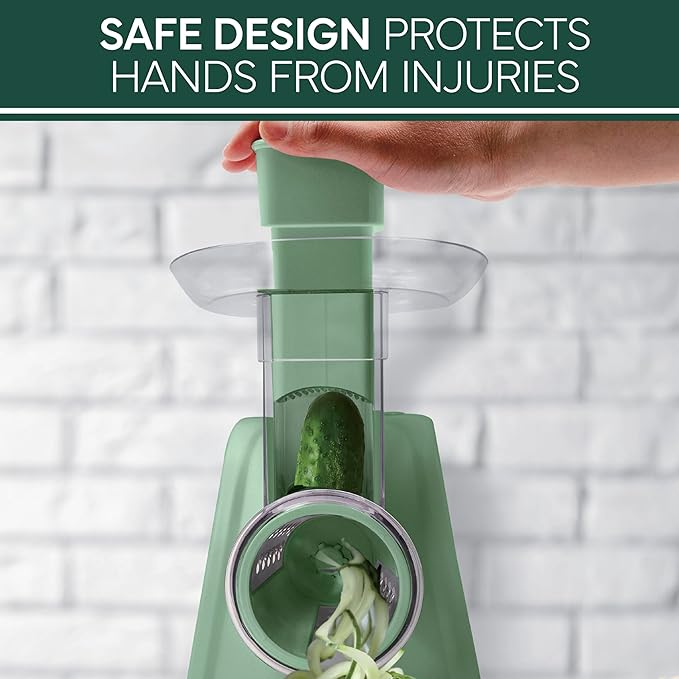 - 5-in-1 Versatile Functionality: Includes five interchangeable cones—fine grater, coarse grater, fine slicer, reibekuchen grater, and parmesan grater—allowing you to easily tackle a variety of ingredients, from vegetables to cheese, for all your meal prep needs.