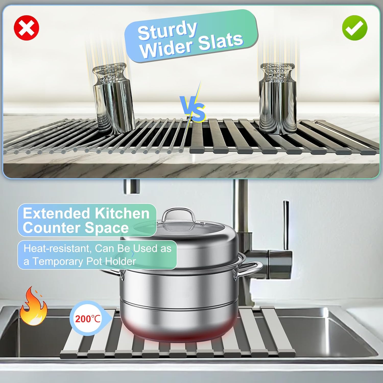 Mamakura Roll Up Dish Drying Rack Over The Sink,Multipurpose Foldable Sink Cutting Boards&Dish Rack for Kitchen,Aluminum Alloy Sink Rack Mat,21.85"x13.31",Grey