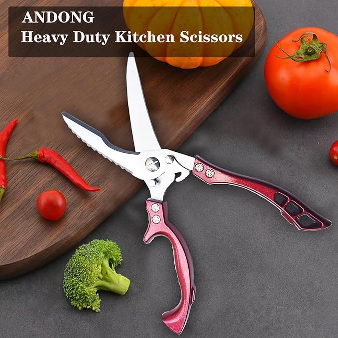 Heavy Duty Kitchen Shears by ANDONG, Kitchen Scissors,Stainless Steel Poultry Shears Heavy Duty Professional, Red