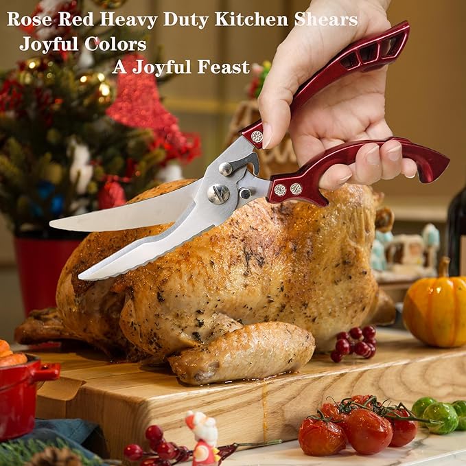 - Versatile: Upgrade your kitchen with these heavy-duty kitchen shears. Crafted from durable stainless steel, these poultry shears are designed to tackle tough cutting tasks with ease. The sharp blades effortlessly slice through meat, bones, and more, making food prep a breeze. These heavy-duty kitchen scissors are ideal for cutting through tough materials like bones, Chicken Meat, Turkey,Poultry.