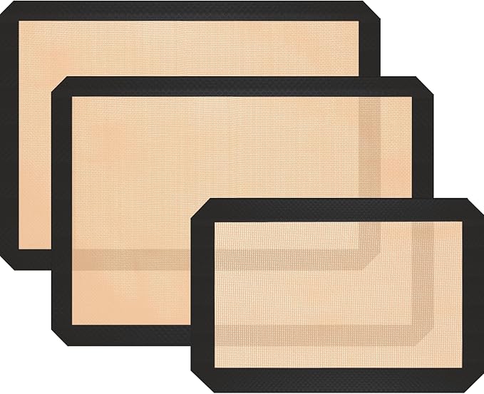 Silicone Baking Mat, 3 Pack Reusable Baking Mat, Non-Stick, Food Safe Silicone Mats for Baking, Oven Baking Sheet for Making Cookies, Macaroons, Bread
