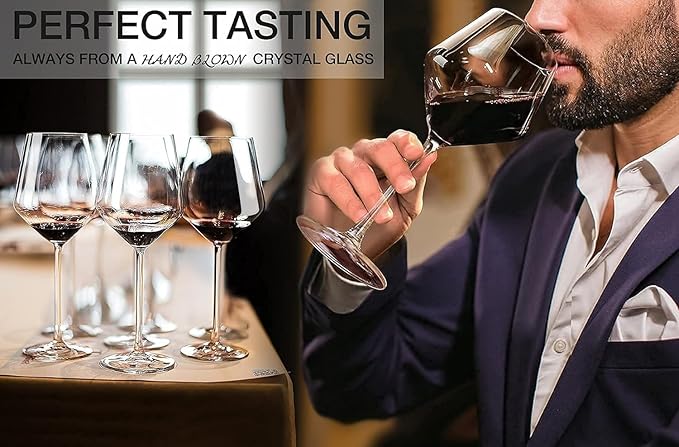 - Exquisite Design for Red Wine Glasses: LUNA & MANTHA red wine glasses is designed having in mind elegance and simplicity. The perfect cold-cut rim and delicate lines as well as the unique shape of the bowl ensure that wine lovers can enjoy Burgundy, Cabernet Sauvignon, Pinot, Bordeaux, and more, allowing your wine to be balanced between acidity and sweetness