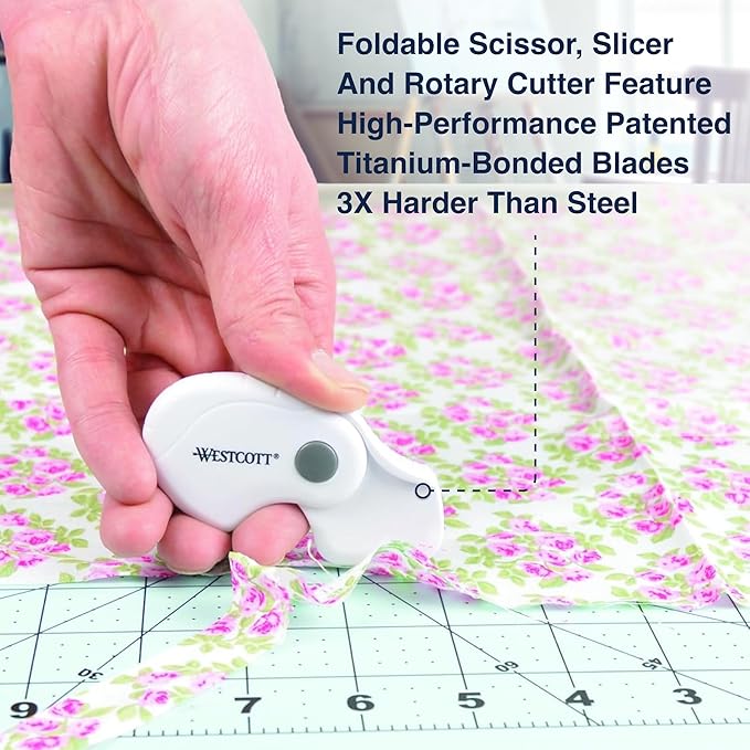Westcott Titanium-Bonded Mini 3-Piece Travel Set - Folding Scissors for Fabric and Paper, Slicer & Rotary Cutter for Fabric