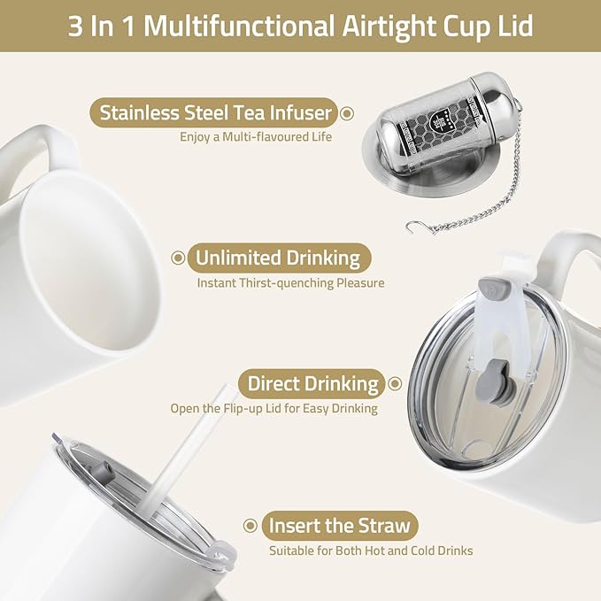 - More Than Just Coffee: With a 304 stainless steel tea infuser, the tea cup is designed for brewing loose leaf tea. The stainless steel material is durable and rust-resistant, ensuring a clean and flavorful tea-drinking experience. This feature makes the travel coffee mug perfect for tea lovers who prefer fresh, quality tea on the go.