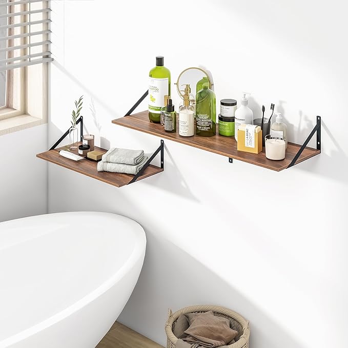 - [Large Capacity Floating Shelves] - Our wall shelves are 24" long x 12" deep, providing ample storage or display space for your kitchen, living room, bedroom, bathroom, laundry room, and more. With such a large space, you can place many items like books, collectibles, plants, crafts, photos, laundry detergent, etc. Our shelf can even be used as a bookshelf or a nightstand. Let our shelves decorate every corner of your home!