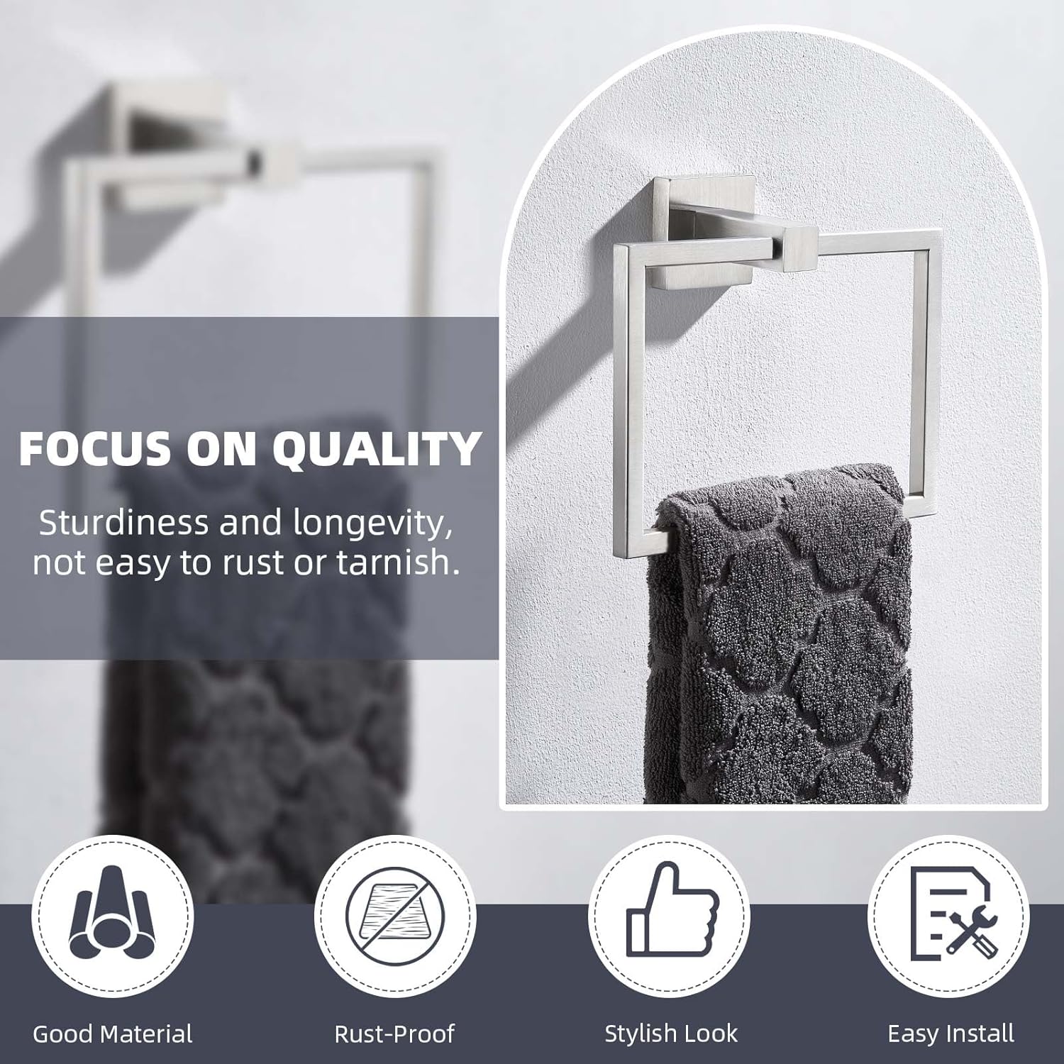 Suyar Brushed Nickel Towel Ring, SUS 304 Stainless Steel Modern Bathroom Hand Towel Holder for Wall