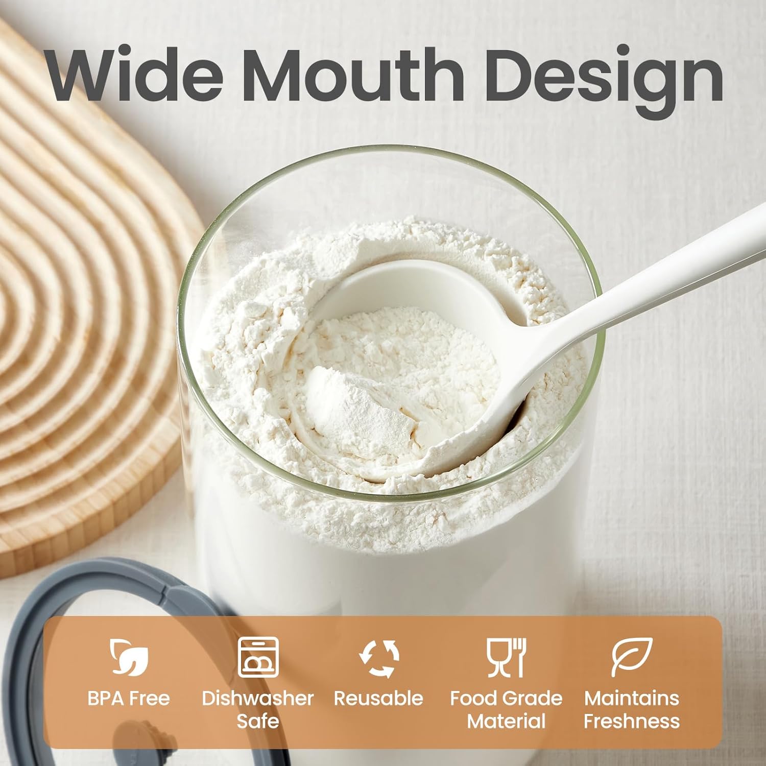 - Large Capacity and Wide Mouth:Spreccio large glass food storage containers with lids feature a wide-mouth design, making them easy to fill, clean, and access items. With a large 1-gallon capacity, they reduce the need for frequent refills, making them ideal for busy kitchens, laundry rooms, or pantries.
