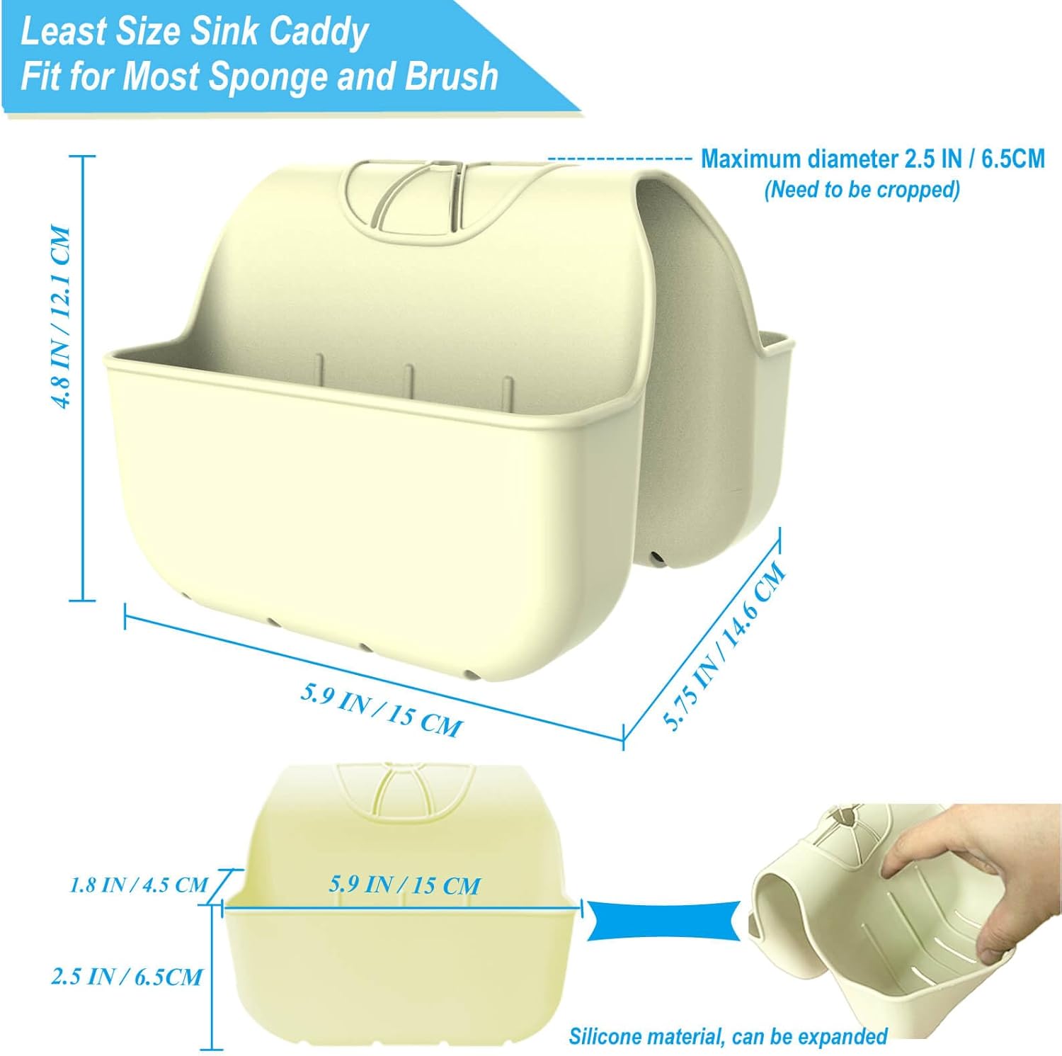 - 【Small Size Take Little Sink Space】 - The sponge holder take small sink space and will not affect daily sink functions and it's very soft and flexible. A single sponge rack size is 5.9"L x 2.5"H x 1.6"W, the max width up to 3.7"W