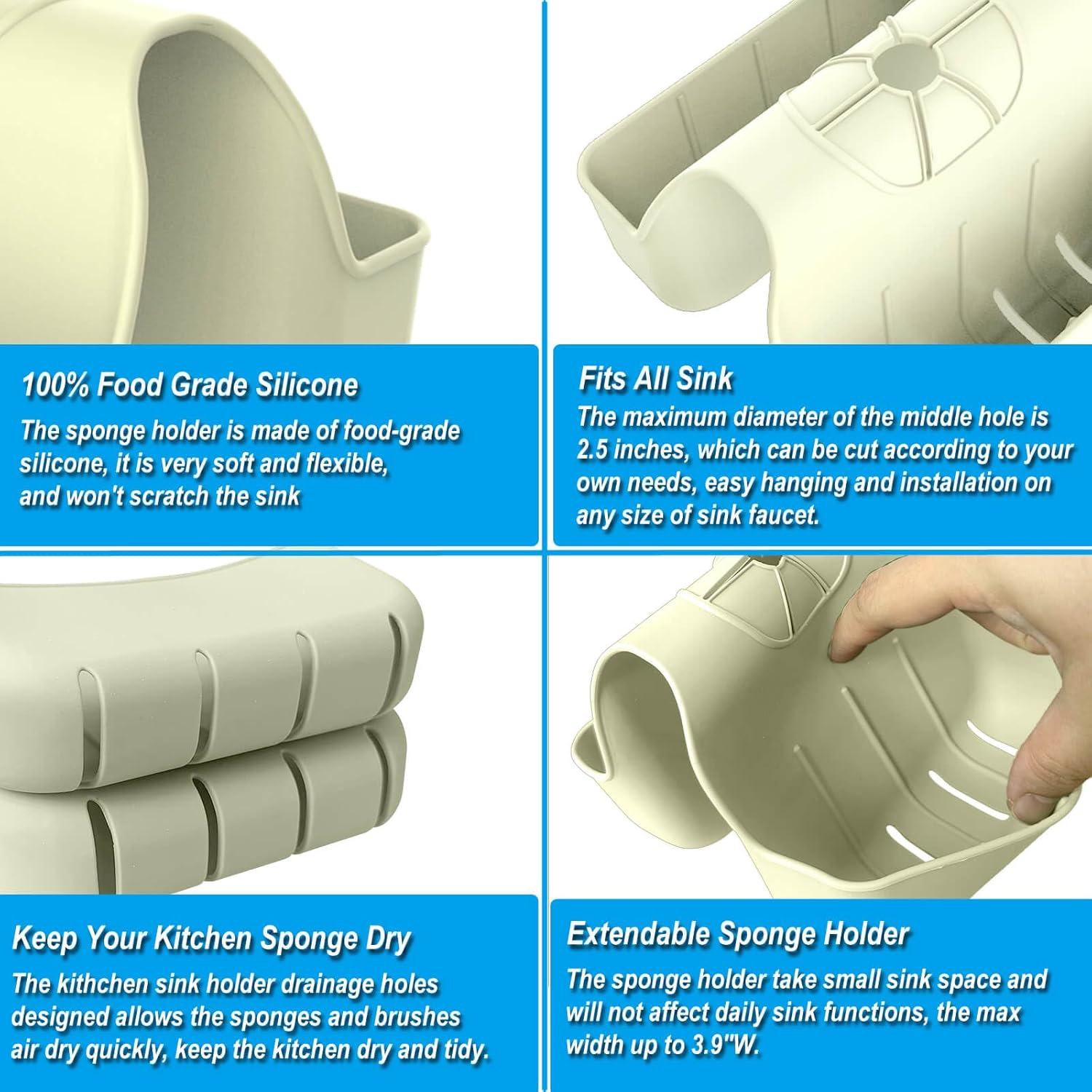 Sponge Holder for Kitchen Sink, Silicone Sink Saddle Caddy Organizer Rack, Sponges Holder Over Faucet, Hanging Kitchen Organizer Accessories Rack Basket Beige
