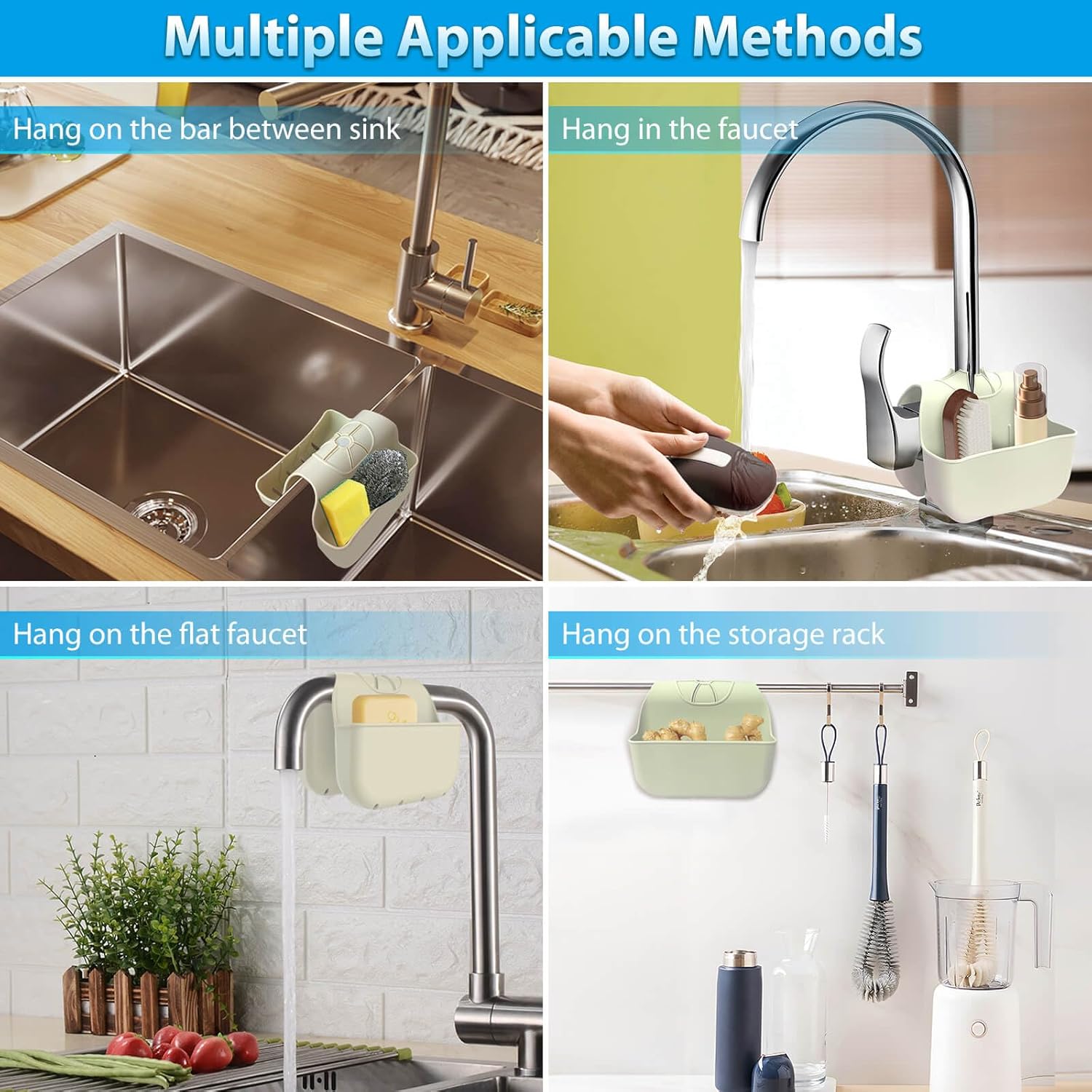 - 【Easy to Use】- Keep your cleaning sponges organized with the kitchen sink caddy holder, the sponge holder fits standard dish sponges and easy hanging and installation on sink and faucet
