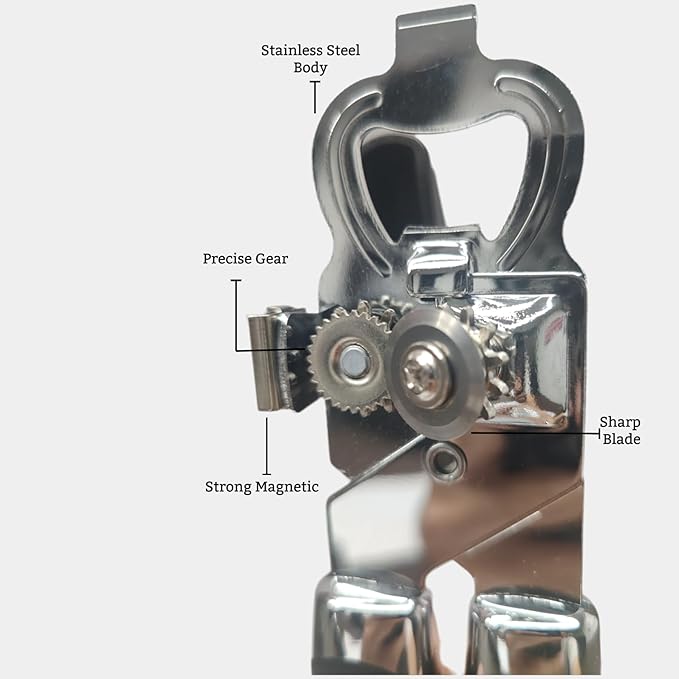 - Magnetic Lift: Strong magnetic suction lift the lids after opening the cans,Once the lid has been cut, use the magnet built-in to pull the lid out,it keeps your fingers safe and food clean.Durable construction,Made of heavy-duty stainless steel with smooth edges to prevent scratches and rust.Handheld and portable, perfect for kitchens, camping, and on-the-go use.It’s best manual can opener suitable for left handed and right hand can opener very safety. DeeKleen can openers hand held, hand can opener manual,swing away can opener.