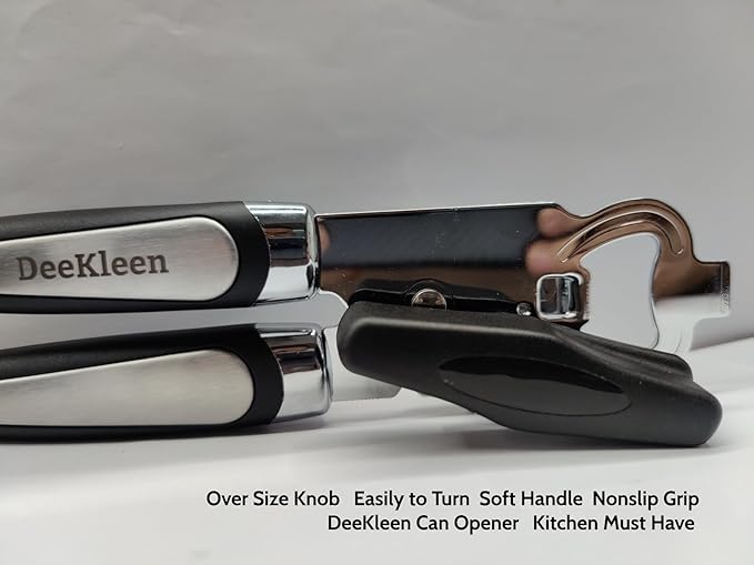 - Oversized Knob Easy to Turn: Requires minimal effort to open cans and bottles.Easy to open, These can openers both feature an effortless to turn, oversized knob makes it easy to open. We use comfortable non-slip rubbers in the handle and knob. The knob with longer length and larger size and makes you more effortless when opening the can. DeeKleen heavy duty can opener top rated.Pampered chef can opener,open it tool package opener,hand can opener manual,can opener heavy duty,2 pack can openers.