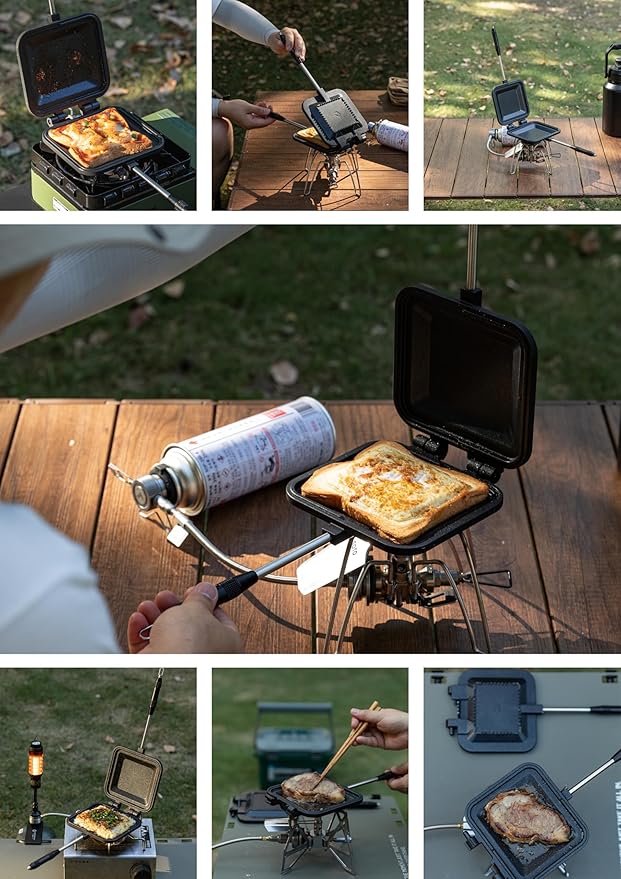 - 【Versatile Outdoor Cooking Companion】The CAMPINGMOON Sandwich Toaster offers a convenient solution for crafting sandwiches, toast, burgers, and snacks, whether you're cooking over an open flame, coals, or grill.
