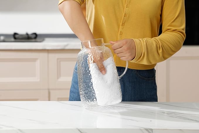 - [Heat-Resistant Borosilicate Glass] The jug is made of lead-free borosilicate glass. It has a large capacity of 110 ounces which helps serve families or guests.