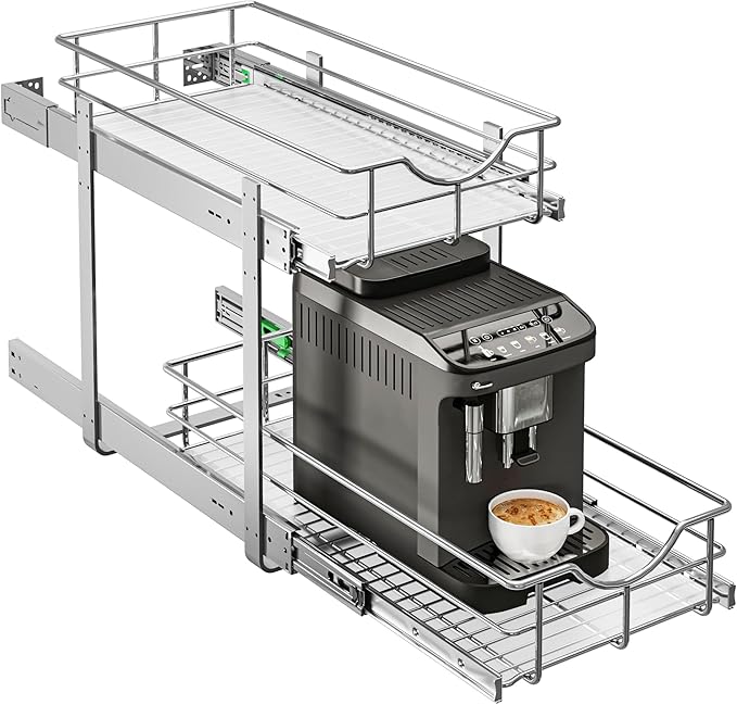 - 【Versatile Storage Solution】 Ideal as a kitchen cabinet organizer, pantry pull out shelves, or under sink storage. Two-tier design maximizes vertical space for pots and pans organizer needs while keeping everything visible and accessible.