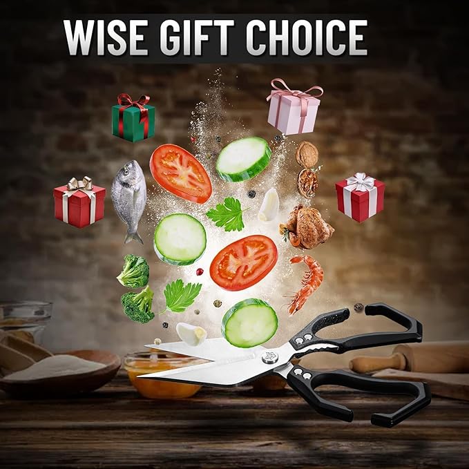 - Heavy-Duty Performance: Equipped with a robust construction and reinforced dual rivets, these kitchen meat scissors excel at tough kitchen tasks, including cutting through chicken bones. Their high-strength design ensures long-lasting performance while minimizing effort.