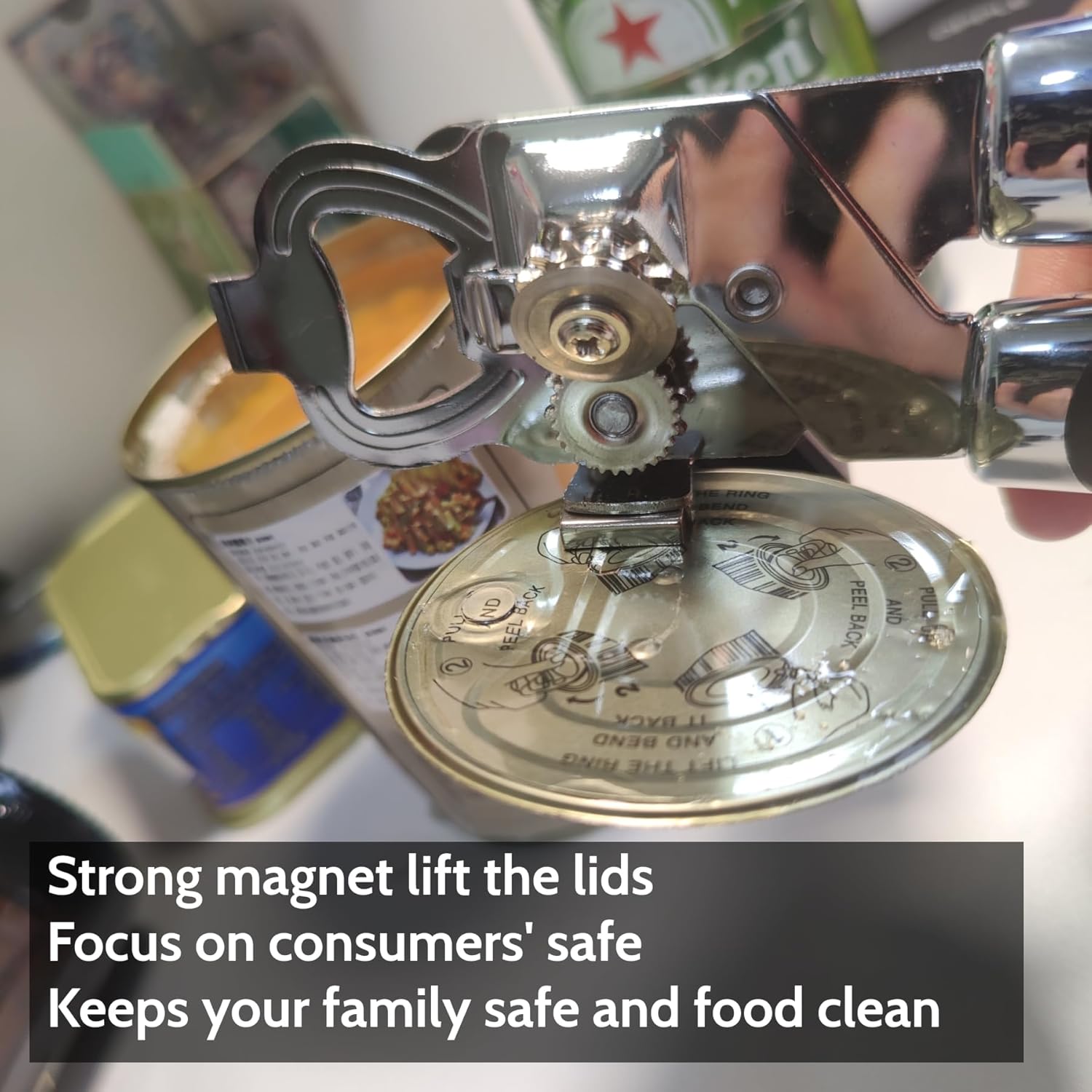 - Magnetic Lift: Strong magnetic suction lift the lid after opening the cans,Once the lid has been cut, use the magnet built-in to pull the lid out,it keeps your fingers safe and food clean.Durable construction,Made of heavy-duty stainless steel with smooth edges to prevent scratches and rust.Handheld and portable, perfect for kitchens, camping, and on-the-go use.It’s best manual can opener suitable for left handed and right hand can opener very safety. DeeKleen can openers hand held,hand can opener manual,swing away can opener.