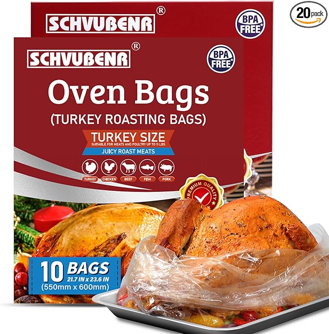 - EASY CLEANUP, NO MESS: Say goodbye to tough cleanup! Our turkey roasting bags make it easy to contain spills and splatters, keeping your oven and pans spotless. Once you're done cooking, just discard the bag - no scrubbing required. Ideal for busy holiday cooking or daily meal prep.