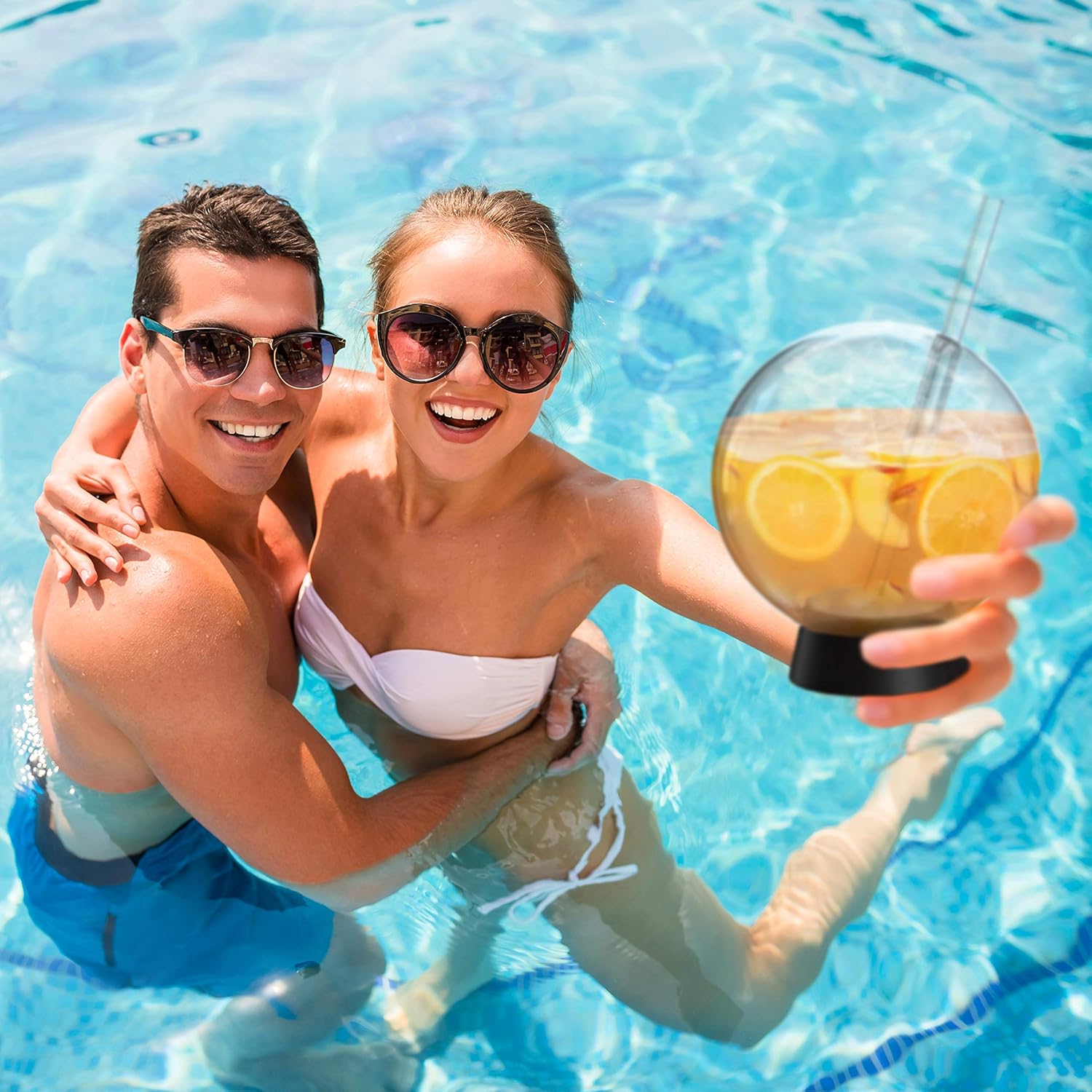 Cocktail Smoker Accessory - Smoke Infuser Cocktail Ball - 2 pcs, Cocktail Ball Glass with Glass Straw for Drink Smoker, 12 Oz (350 ml), Black