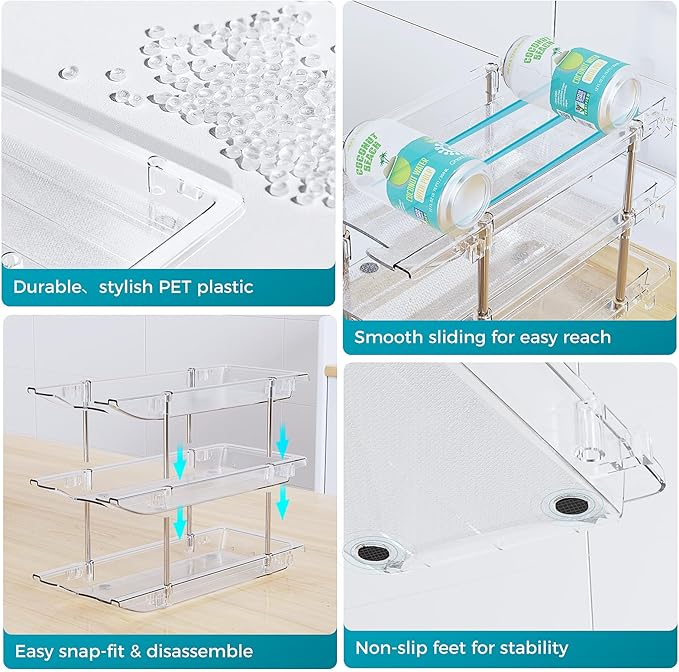 - Durable and Eco-Friendly Material: Made from sturdy PET material, this canned food organizer for pantry can hold up to 36 standard cans, making it more robust than metal racks. Plus, it’s easier to clean, ensuring your storage solution remains hygienic
