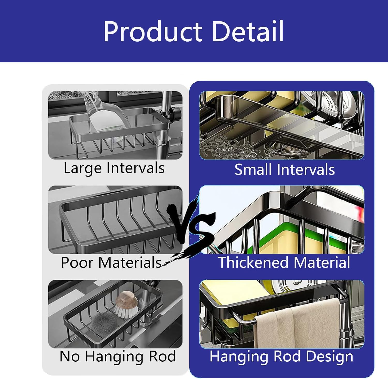 - 【Easy to Install】First snap our sink organizer on the faucet rod, then tighten the knob to fix. Installation and dismantling are effortless. Note: This sink organizer rack for kitchen is only available for 0.7-1.1 inch round Faucet pipes, not square Faucet pipes.