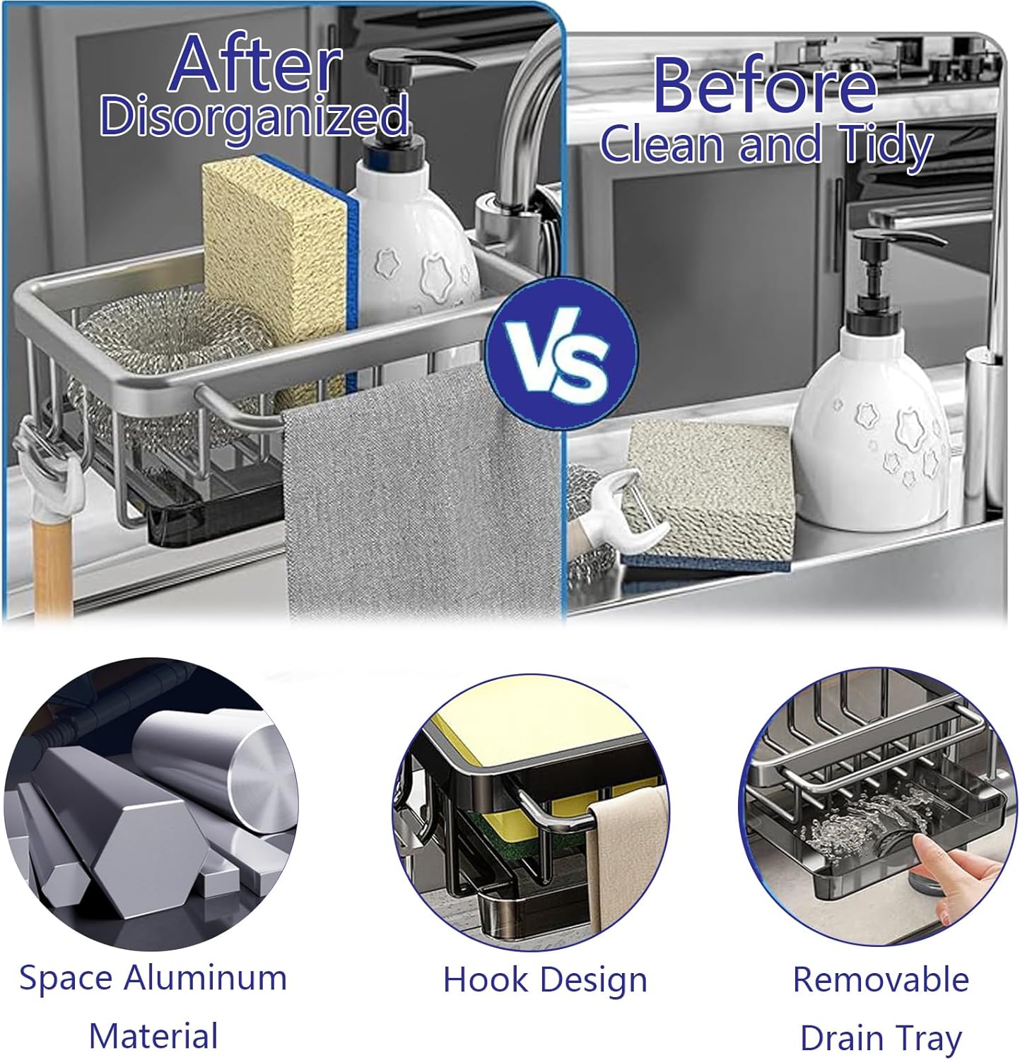 - 【Durable High-Quality Materials】This kitchen sink caddy organizer is made of space aluminum, which is waterproof, fingerprint-resistant, strong and strong, and has a high load-bearing capacity. Better surface gloss leads to a better appearance.
