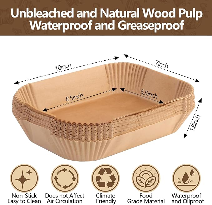 - 【Convenient to Use】These disposable air fryer liners are designed with a rectangular 8.5'' x 5.5'' pan shape that does not need to be torn, folded, cut or bent and can be placed directly into the fryer when ready to cook. Keep your fryer clean and save time and effort