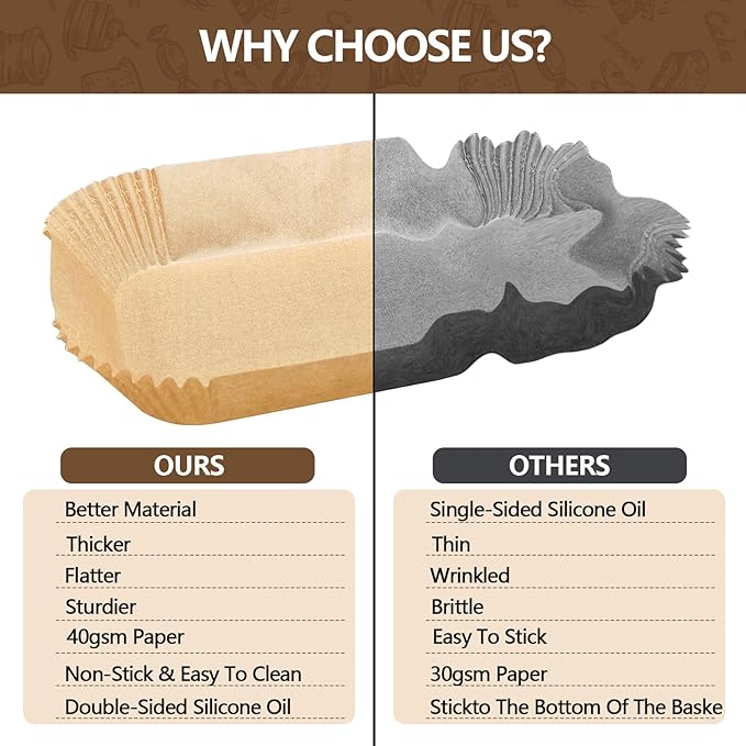 - 【Healthy materials】The Ninja Air Fryer disposable paper liners are made from untreated wood with a silicone coating, unbleached, no fluorescent additives, BPA-free, PFA-free. Waterproof, oilproof, non-stick, heatproof, 100% healthy
