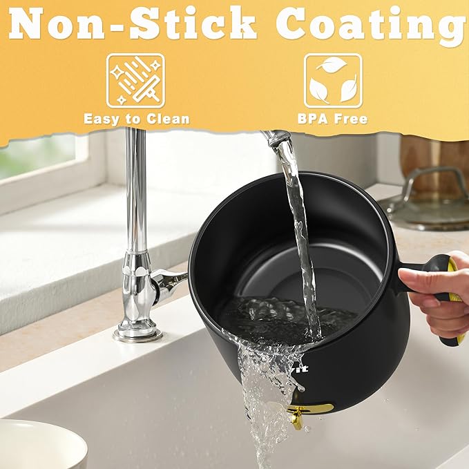 - EASY TO CLEAN & HEALTH COOKING - This ramen cooker features an intuitive temperature control knob, allowing for precise adjustments to achieve perfect cooking results, with its smooth non-stick surface of the inner pot helping to prevent food from sticking, ensuring easy release and quick cleanup. Health-conscious chefs prefer this material, as it reduces oil usage compared to uncoated cookware. It is also safer, non-toxic, and environmentally friendly, even at high temperatures.