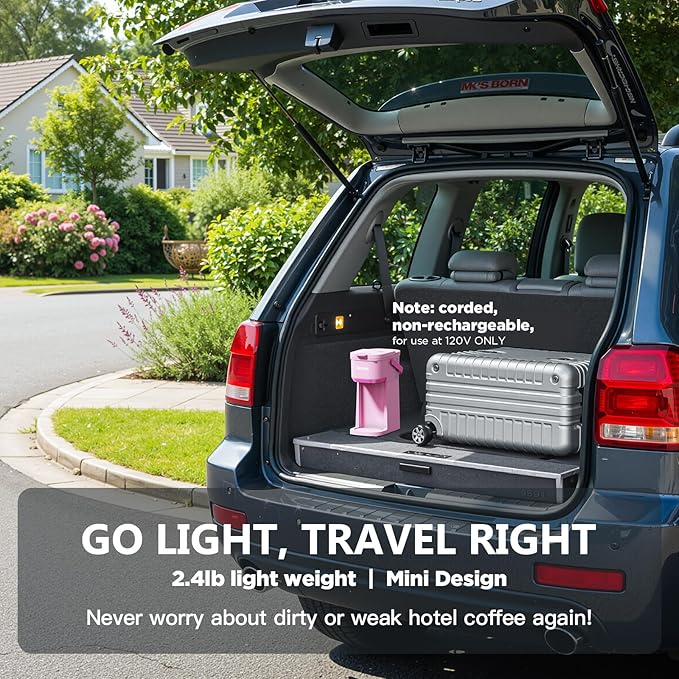 - Litte Coffee Maker with To-Go Handle: This single cup coffee maker has a very small footprint (8.1''D x 4.6''W x 9.8'' H) and a portable handle, making it a breeze to take on the go for travel, camping, or anywhere else you desire. It fits perfectly in small spaces like offices, RVs, dorm rooms, apartments, and hotels