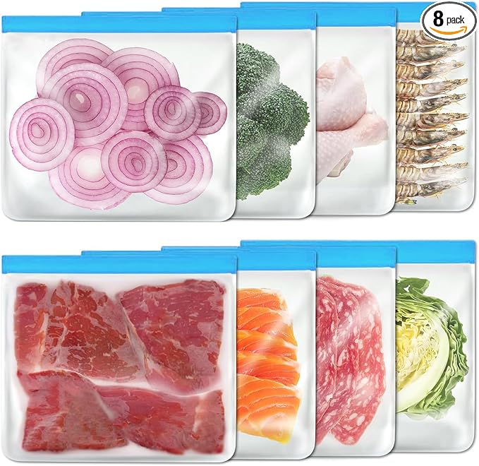 8 Pack Reusable Gallon Bags Dishwasher Safe, Silicone Leakproof Reusable Freezer Bags, BPA Free Reusable Food Storage Bags for Candy, Snack, Cereal, Travel Items, Home Organization(Blue)