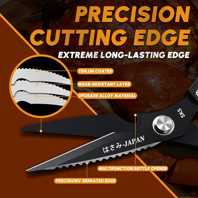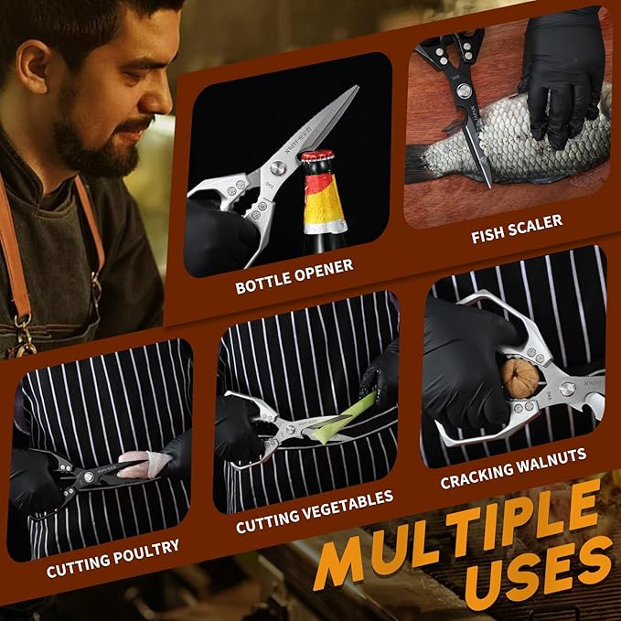 - Two Color Options--This cooking shear set includes one silver and one black shear. The silver shear offers a classic and elegant appearance, perfect for any kitchen setting, while the black turkey shear adds a modern and sleek touch, elevating your culinary experience with its sophisticated look. Choose the color that best matches your kitchen style and needs.