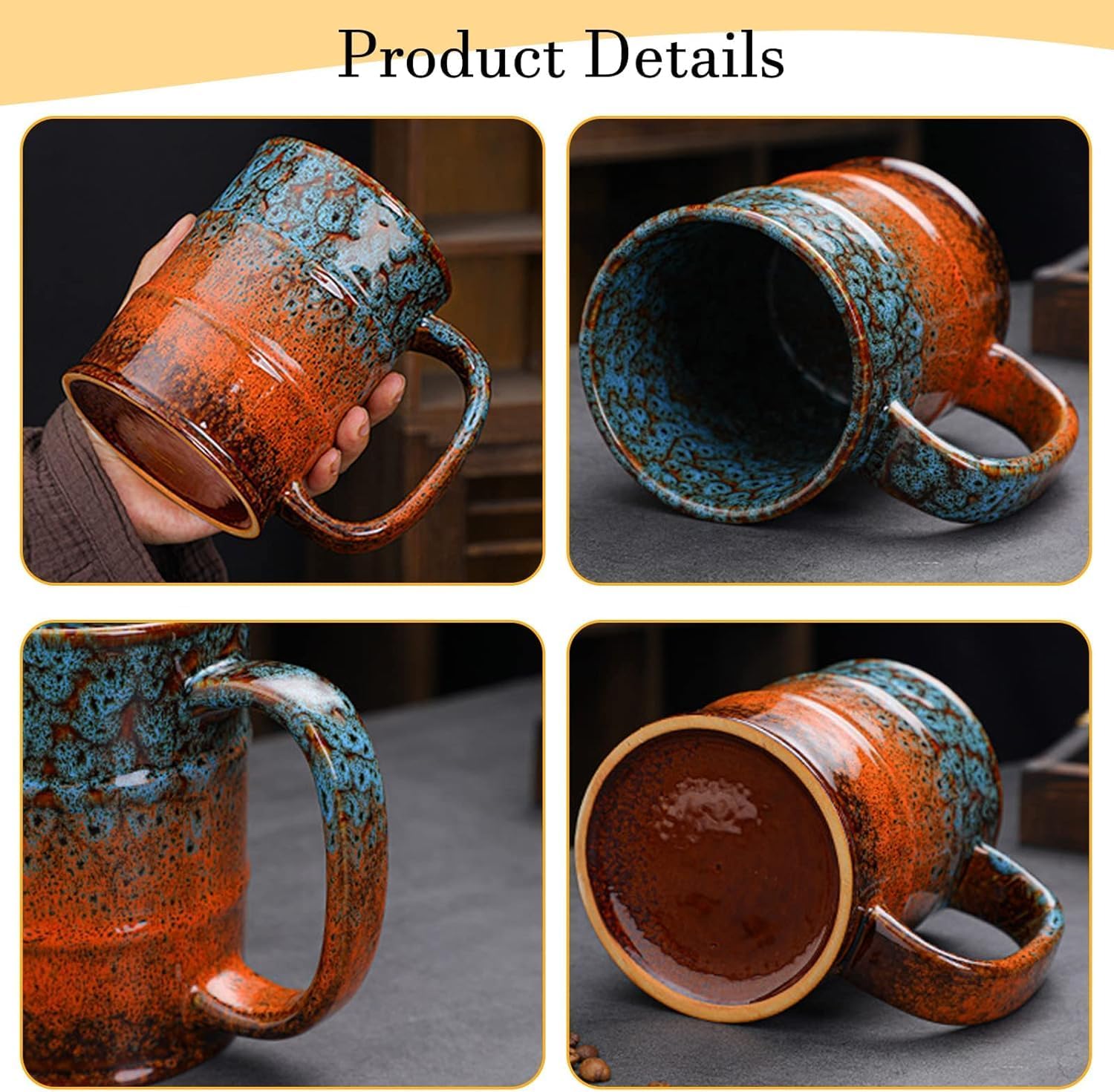 - Large Size and Capacity Coffee Mug: Our unique kiln-changed glaze features an impressive 20 oz capacity, standing 4.9 inches tall and 3.7 inches in diameter. It's perfect for serving both hot and cold beverages, making it an ideal choice for large servings of coffee, tea, lattes, milk, juice, or even beer,These coffee mugs are the perfect companions for your daily caffeine fix or refreshing drinks.