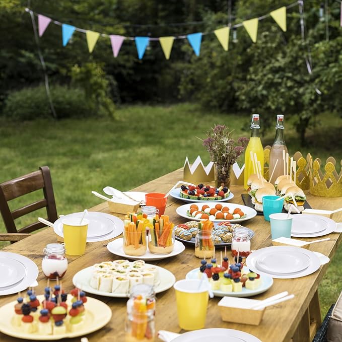 - ELEGANT STYLE: Classic white plastic plates look elegant and are perfect for formal occasions. Whether you're hosting a grand dinner or a simple gathering, these white disposable plates are beautiful and elegant, making them ideal for parties.