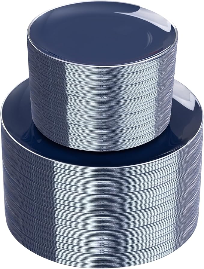- RELIABLE MATERIAL: Our navy blue plates are made of high-quality food-grade plastic, BPA-free! These blue and silver plates are sturdier than paper plates and less likely to leak
