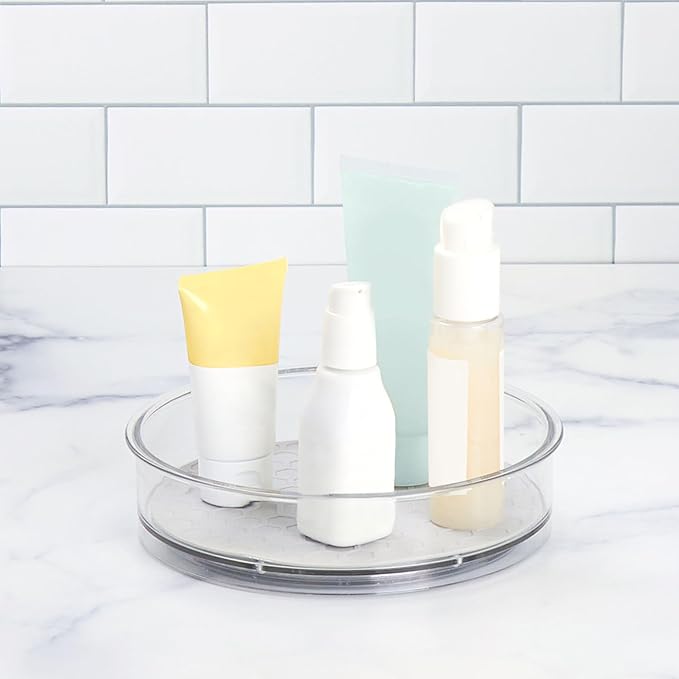 - Durable and Smart Design: Crafted with high-quality materials to withstand heavy daily usage. The sides are enclosed to keep items from falling or spilling out of this small turntable. An anti-slip mat ensures your stored items won't shift or tip when the tray organizer is in use.