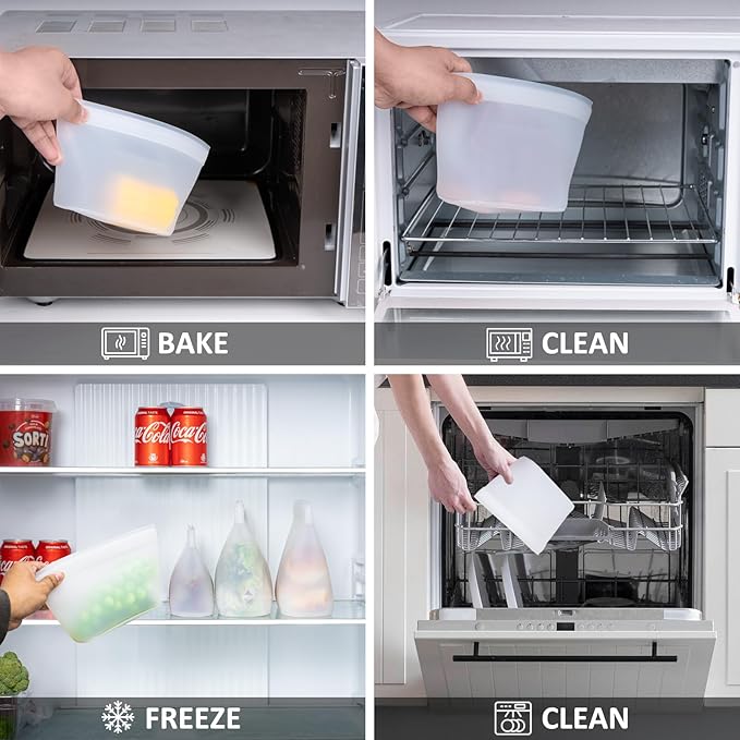 - ππππππππππ πππ π & ππππ πππππ: Simply toss into the dishwasher or use warm soapy water. Avoid turning the bag inside out as it could cause the bag to rip.Heat and cold resistant (-40Β°C~230Β°C), so silicone snack bags are microwave-safe, dishwasher-friendly, freezer-to-oven compatible. Boil or freeze meal preps. Perfect for sous-vide, baby food, baking, and reheating leftovers. A good kitchen helper