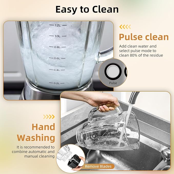 - CONVENIENCE AND EASY CLEANING: The blender for smoothies is designed for convenience, featuring a small, easy-to-remove measuring cap for quick ingredient addition. It’s simple to clean—just rinse with water or use the automatic cleaning function