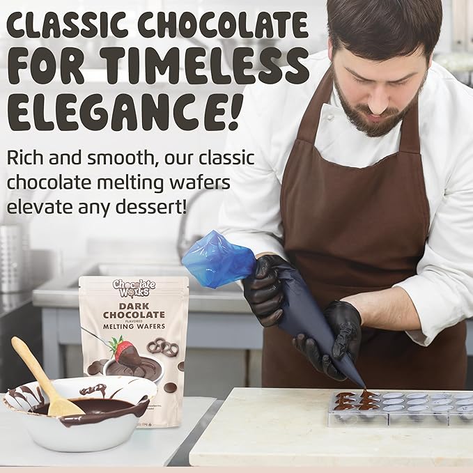- DARK MELTING CHOCOLATE - Create deliciously creamy and velvety sweet treats with premium dark chocolate melting discs! Our chocolate melts feature professional taste and quality whether you’re a home baker or a seasoned candy-maker.
