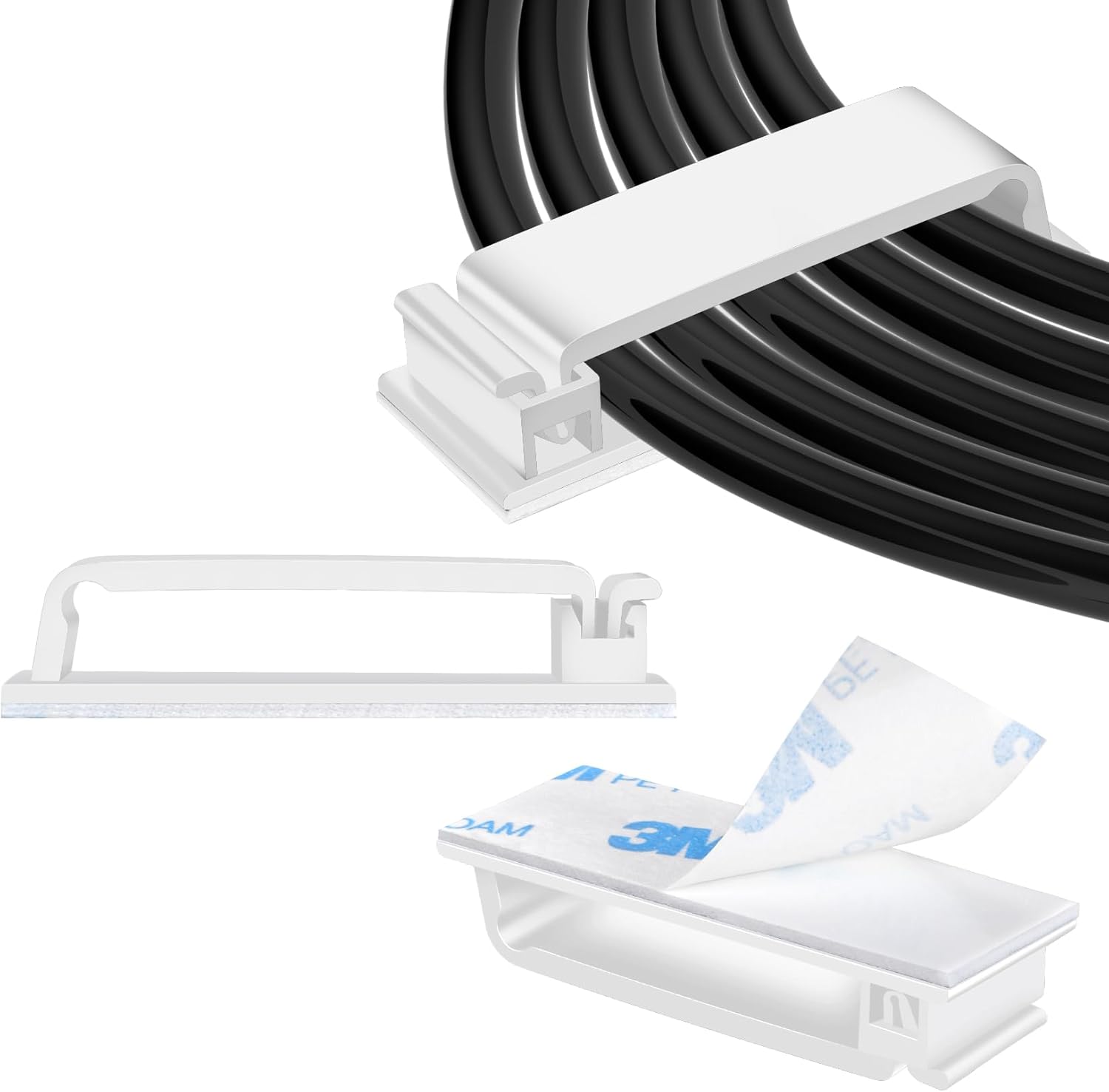 XHF 50 PCS Self Adhesive Cable Clips(L) White,Wire Clips Cable Management Wire Organizer Cord Holder for Under Desk, Car, Wall, TV PC Ethernet Cable